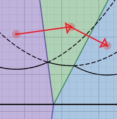 본론부터 말하자면, 우린 호(Arc)에 다음 호(Arc)도 넣어서, 현재 스위핑 중인 X좌표에 따라, 어느 지점 Y좌표까지 이 호가 관리하는 영역인지 알 수 있게 할 것이다. 이런 식으로 하면, 우리는 새로운 점을 넣을 때, 어느 호에 넣어야 하는지 이분탐색으로 찾을 수 있다.