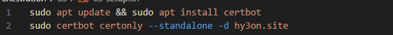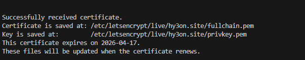 저런식으로 인증을 했는데, 생각해보니까, hy3on.site에 대해서만 인증을 할게 아니라, *.hy3on.site에 대해서 인증을 시도해야한다.